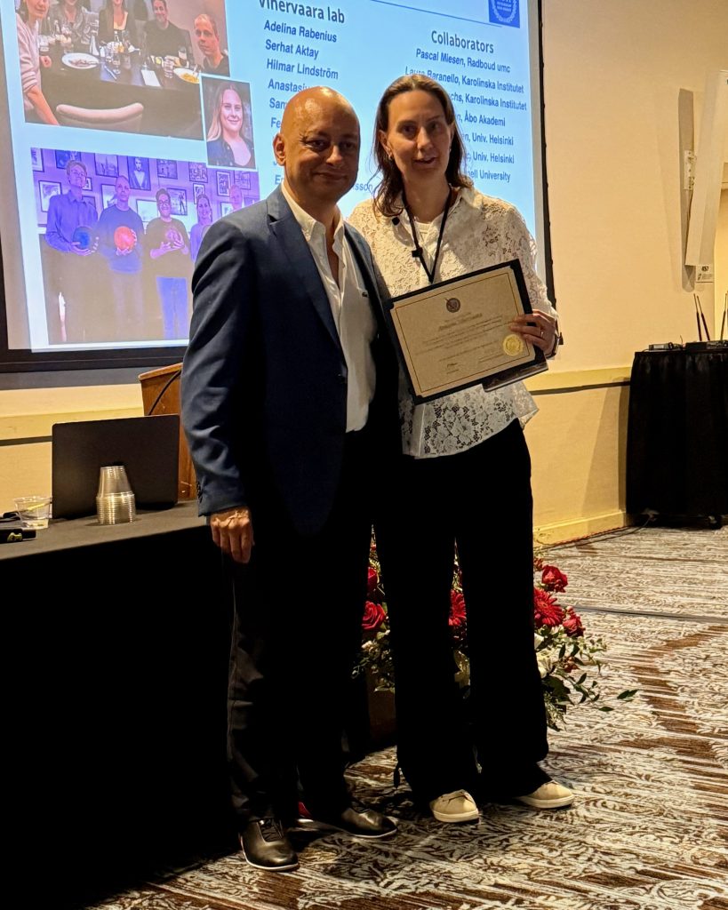 We are proud to announce that several members of our team were honored at the event. Jenny Pessa received the Best Short Talk Award. Our alumna Dr. Anniina Vihervaara was honored with the Alfred Tissières Young Investigator Award, presented to an early-career scientist who has made significant contributions to the field. Professor Lea Sistonen was awarded the Dr. Larry Hightower Award for Excellence in Mentorship, celebrating mentors who exemplify both scientific excellence and commitment to nurturing the next generation of researchers.